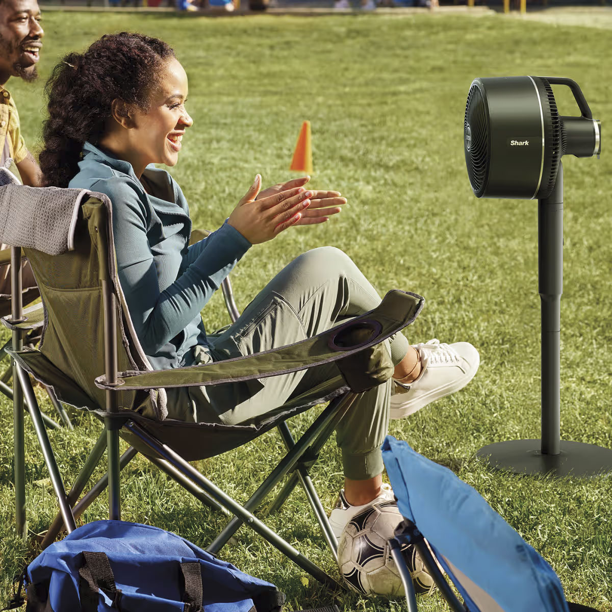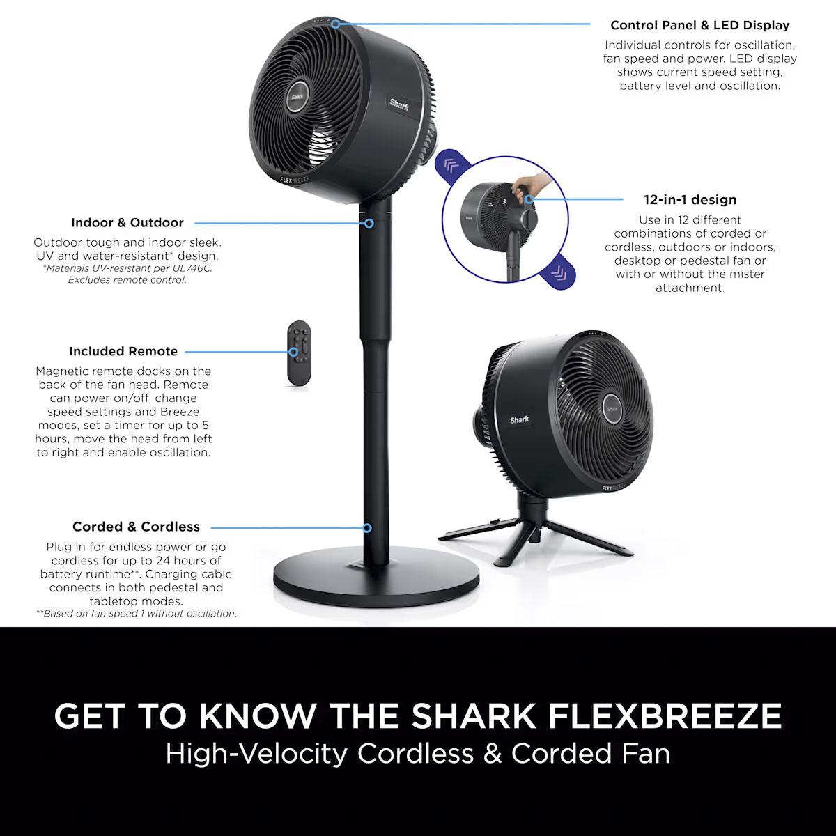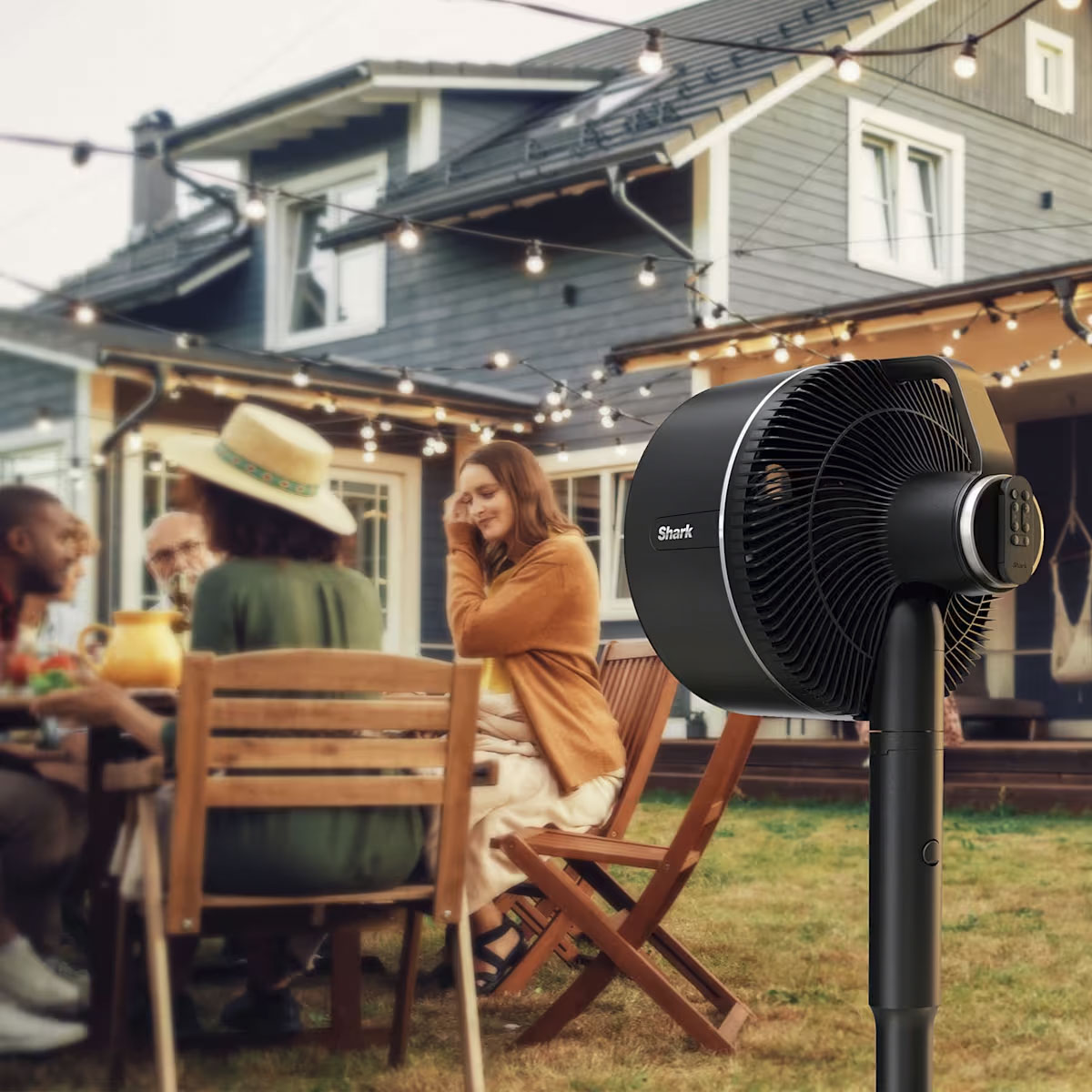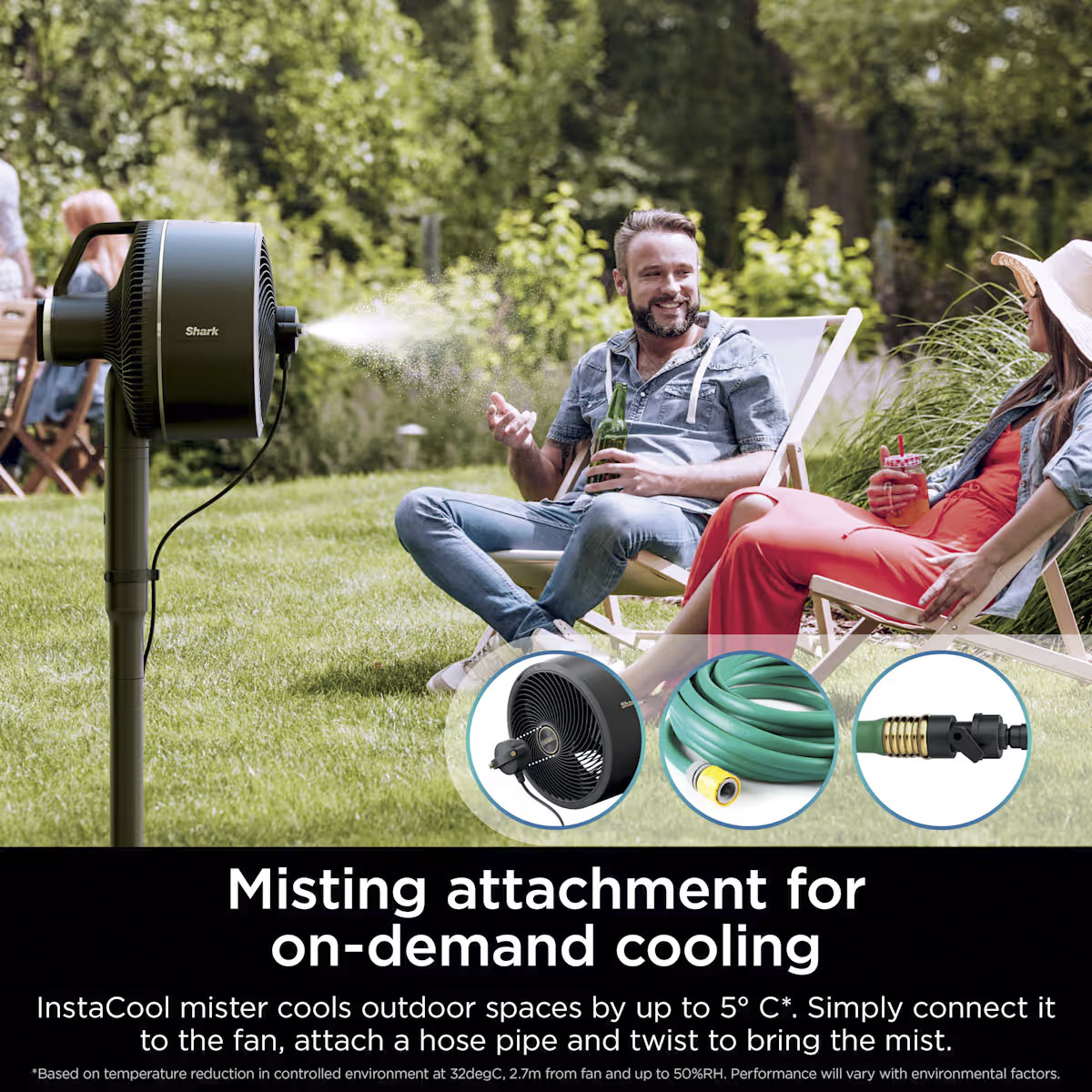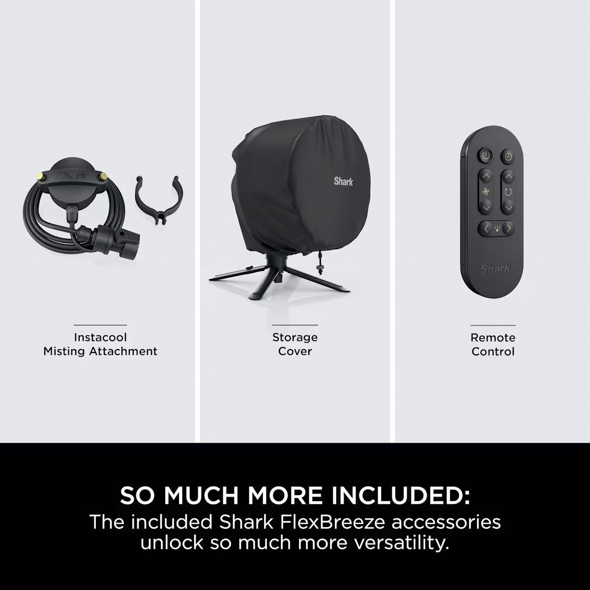 • پنکه هیبریدی Shark FlexBreeze برای استفاده در فضای داخلی و خارجی با کاور، پایه ایستاده، ریموت کنترل و سری پاشش مه InstaCool